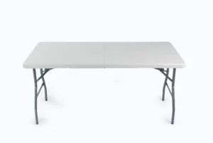 The Grande Banquet Table features a spacious plywood top and sturdy steel frame, perfect for accommodating larger groups with ease and sophistication.