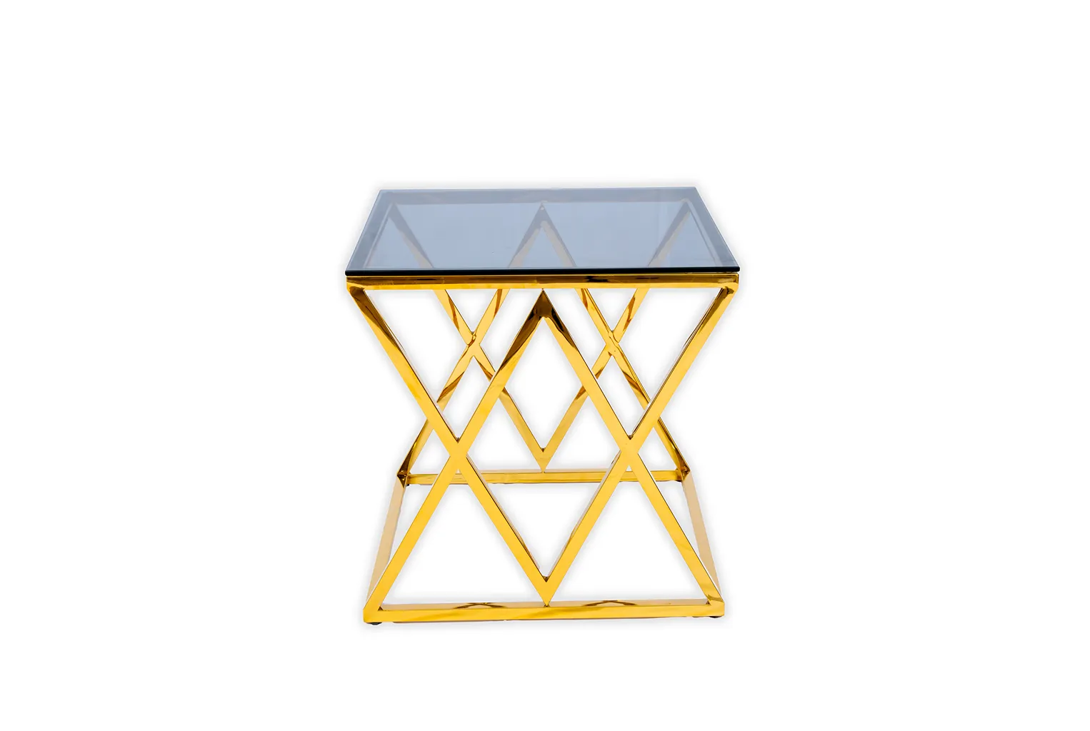 The Rose Golden Mocha Table features a grey tempered glass top and a rose gold chromed frame, blending elegance and style to create an eye-catching piece for any setting.